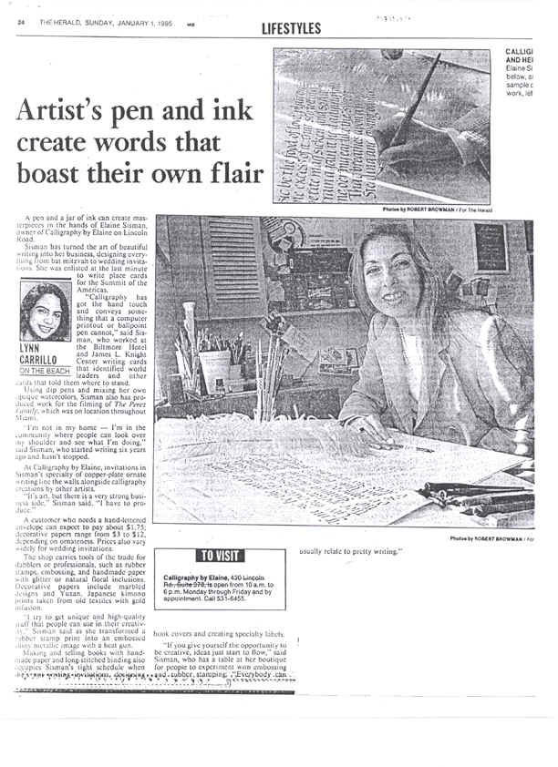 Recent Media Coverage of Calligraphy by Elaine, Inc.