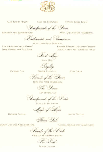 100% Cotton Crane Paper Program with Gold Engraved Monogram.